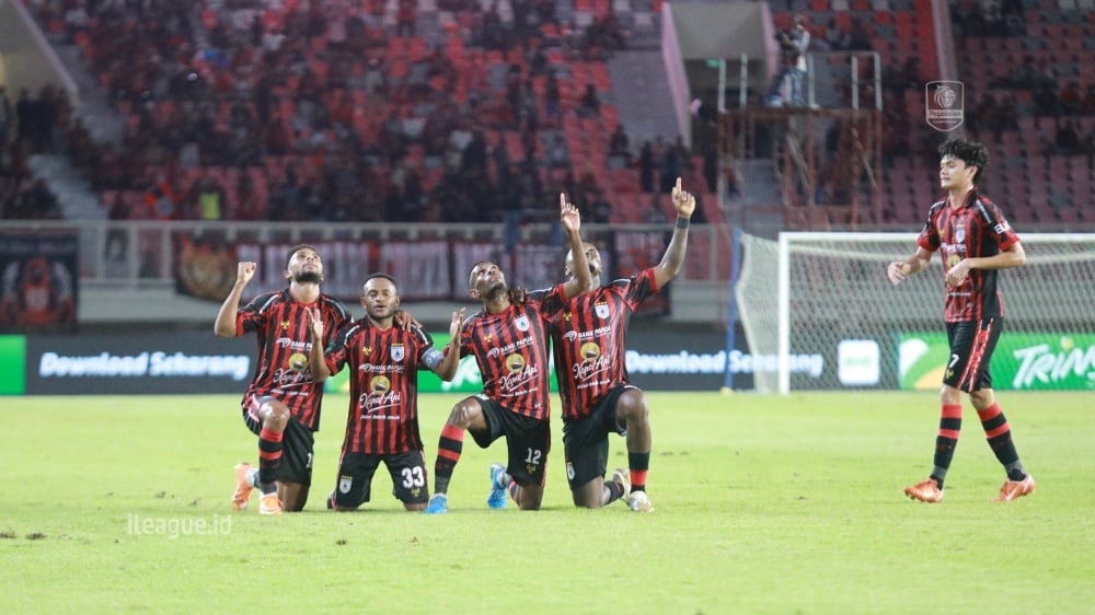 Keterangan: Selebrasi dari pemain Persipura Jayapura usai mencetak gol ke gawang Deltras United di Liga 2 Championship, 29 Maret 2026. (Sumber Foto: Ileague)